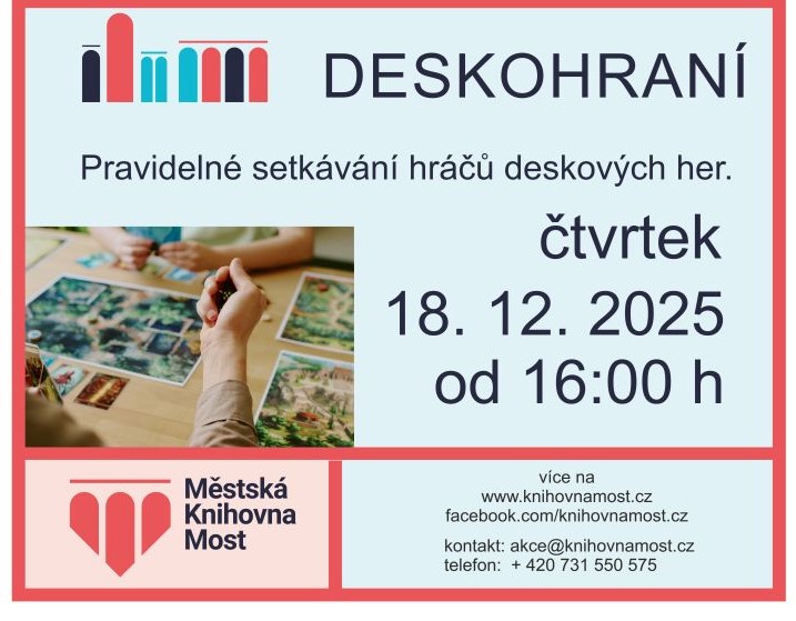 Pro všechny milovníky deskových a karetních her pořádáme vždy jeden čtvrtek v měsíci od 16:00 DESKOHRANÍ.