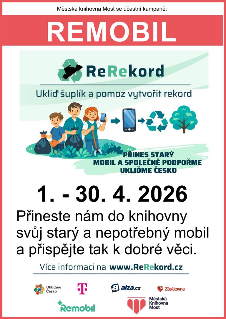 Připojte se k dobré věci! Městská knihovna Most se opět účastní kampaně Remobil, v rámci které můžete donést svůj starý a nepotřebný mobil do 30. 4. 2025 a přispět tak k dobré věci.