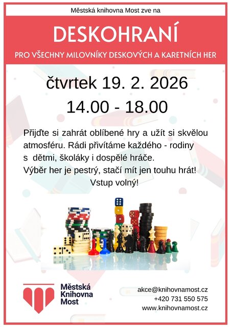 Zveme Vás na naše již tradiční deskohraní ve čtvrtek 19. 2. 2026 od 14:00 do 18:00!