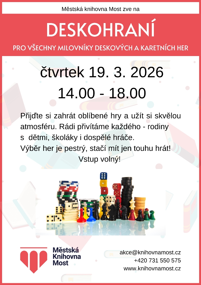 Pro všechny milovníky deskových a karetních her pořádáme vždy jeden čtvrtek v měsíci od 14:00 DESKOHRANÍ.
