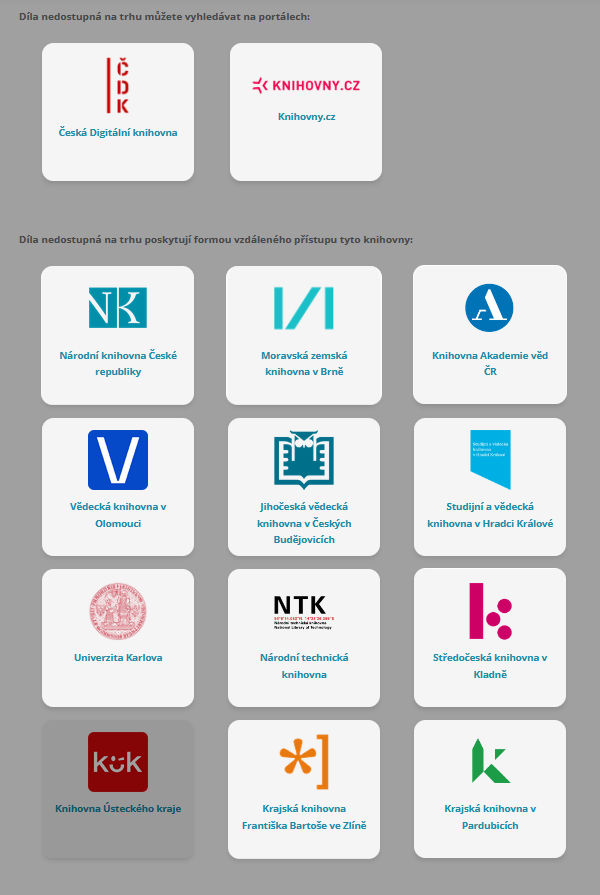 Každý čtenář Městské knihovny Most s platným čtenářským kontem může využít online přístup ke kompletním textům knih a časopisů s licencí “Díla nedostupná na trhu - online”.